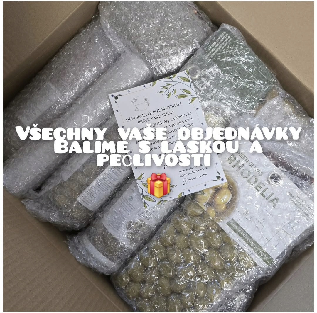 Zboží, které prodáváme, nám dodává firma Mastoras z Rhodosu již zabalené v krabicích. Tyto krabice následně využíváme pro expedici objednávek: